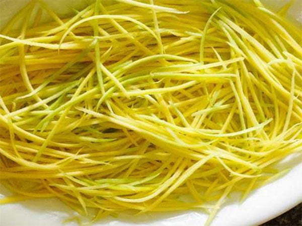 Lột sạch vỏ, bào sợi hoặc miếng mỏng khoảng vài cm.