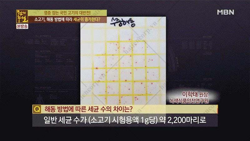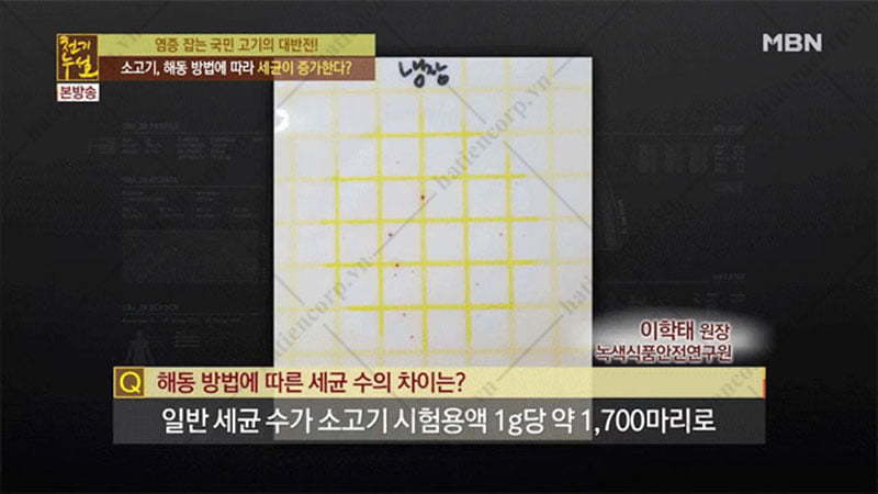 Thí nghiệm đến từ các chuyên gia Hàn Quốc, thực hiện việc rã đông cho 3 miếng thịt bò trong ngăn đông tủ lạnh công nghiệp.
