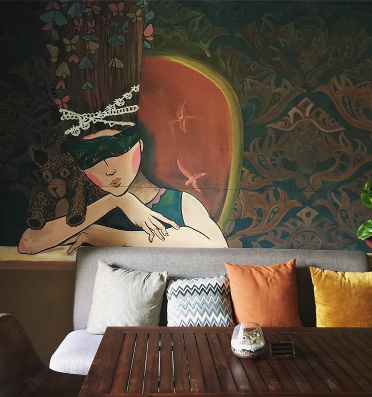 Tại tất cả chi nhánh RuNam Bistro luôn có một không gian tường mang hình ảnh cận cảnh chi tiết của logo thương hiệu. Khi nhìn từ xa, những hoạ tiết như điểm xuyến cho cánh chuồn chuồn thêm sinh động. Nhưng khi phóng đại và nhìn vào chi tiết chính là hình ảnh đôi mắt rồng.