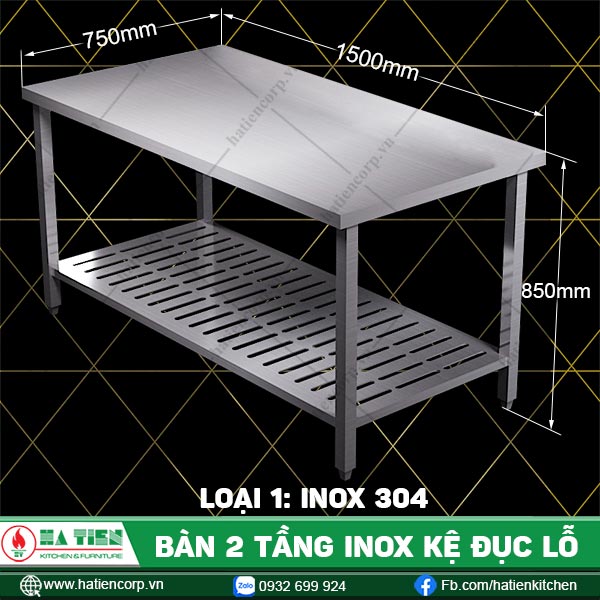 Bàn 2 tầng inox kệ đục lỗ – Bàn bếp inox cao cấp