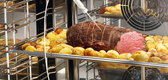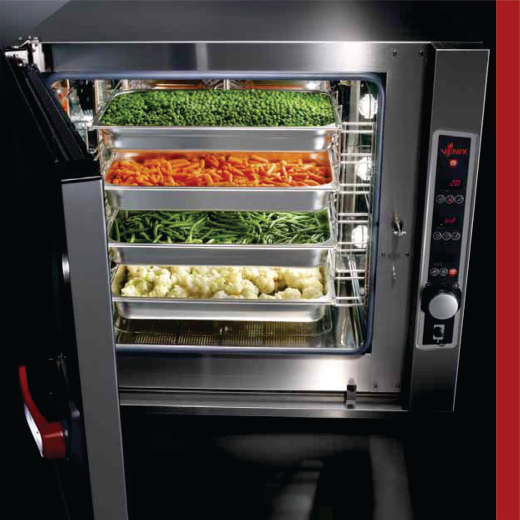 Lò hấp nướng đa năng là thiết bị nấu chuyên nghiệp, kết hợp giữa hơi nước và khí đối lưu. Thiết bị này vừa có thể sử dụng chức năng nướng, hấp hoặc kết hợp cả 2 chức năng trên khi nấu. Phù hợp khi chế biến các món như: nướng, quay, hấp, hầm, rán …