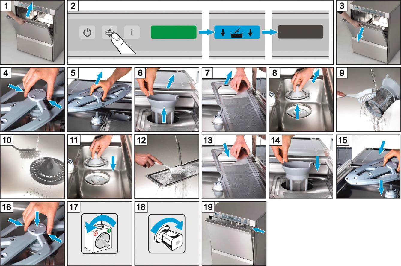 Thay thế các hộp chứa chất trợ rửa và chất tẩy rửa kịp thời để đảm bảo tối ưu kết quả rửa.
