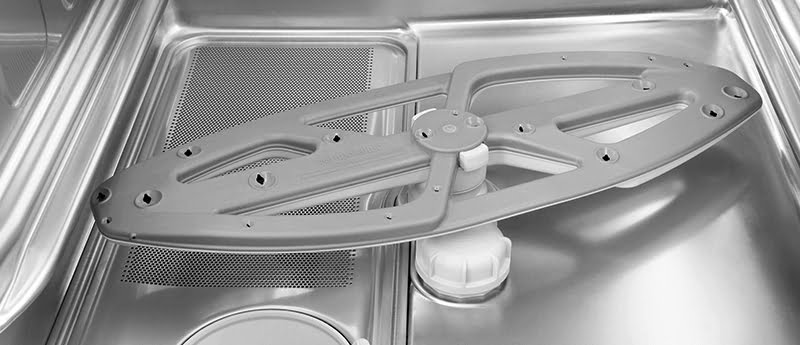 - Hệ thống rửa xoay đều trên cùng, dưới cùng làm sạch chén dĩa, dụng cụ.