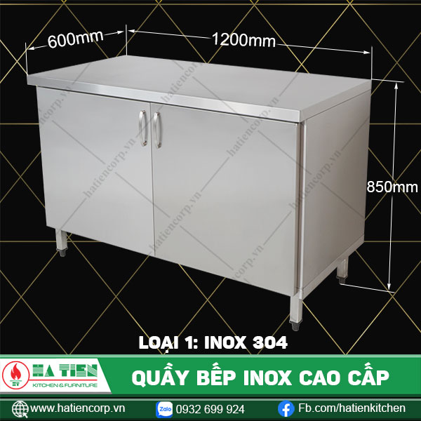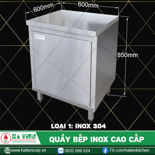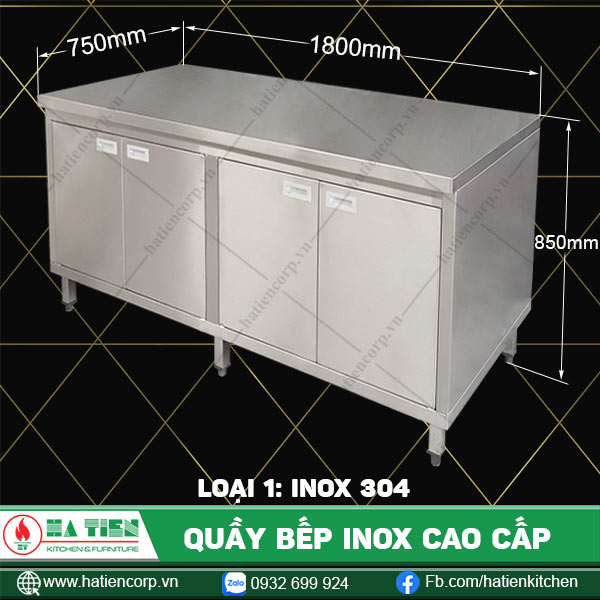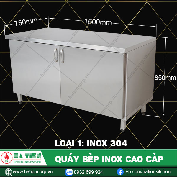 | Kích thước quầy inox (mm) | 1200×600, 1200×750, 1500×600, 1500×750, 1800×600, 1800×750, 2100×600, 2100×750, 600×600, 600×750, 900×600, 900×750 |