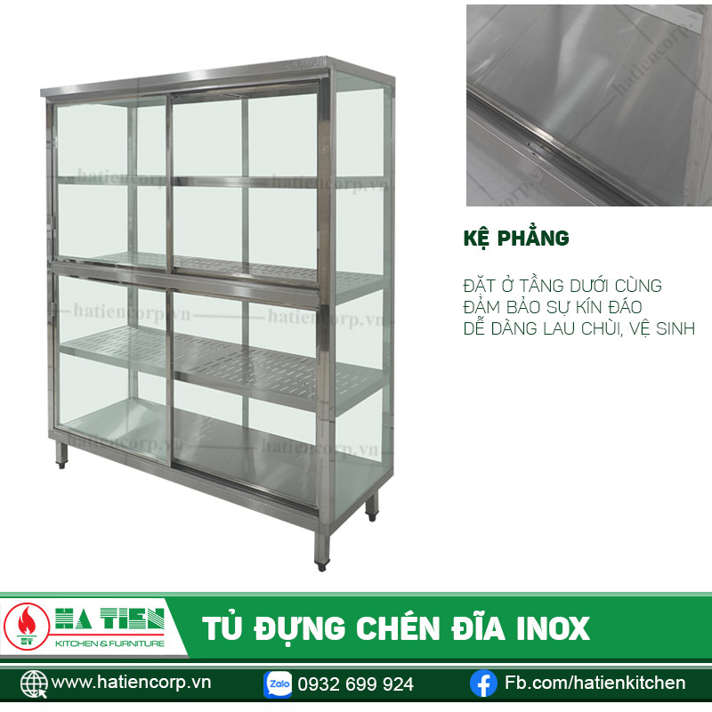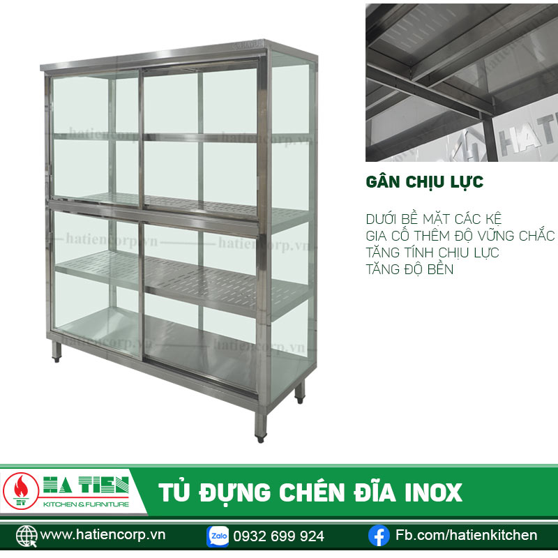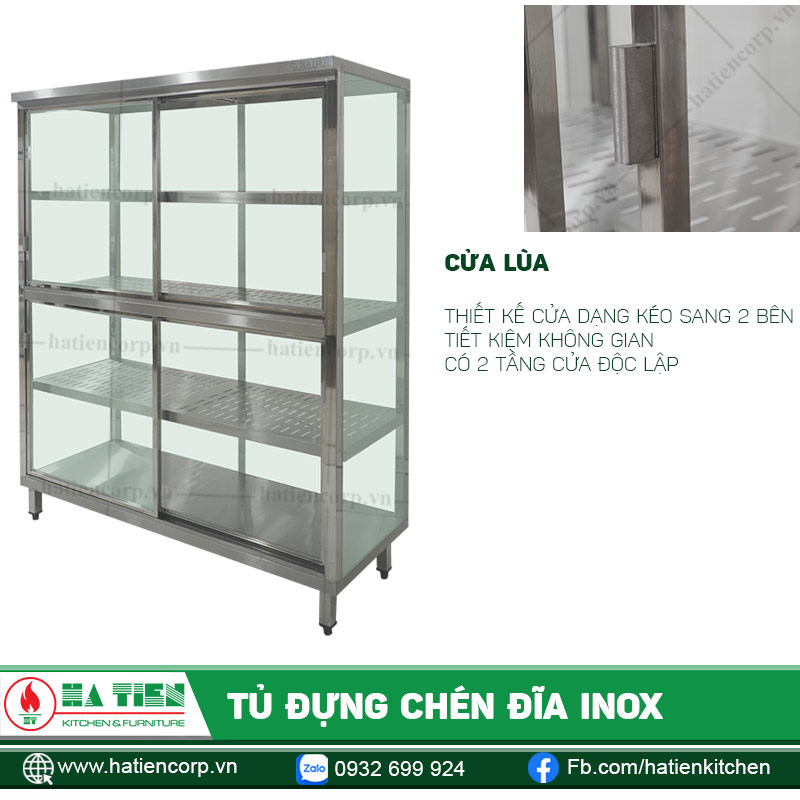 Tủ Đựng Chén Đĩa Inox Mặt Kính có thể được thiết kế với các kích thước khác nhau. Phù hợp với yêu cầu của quý khách.