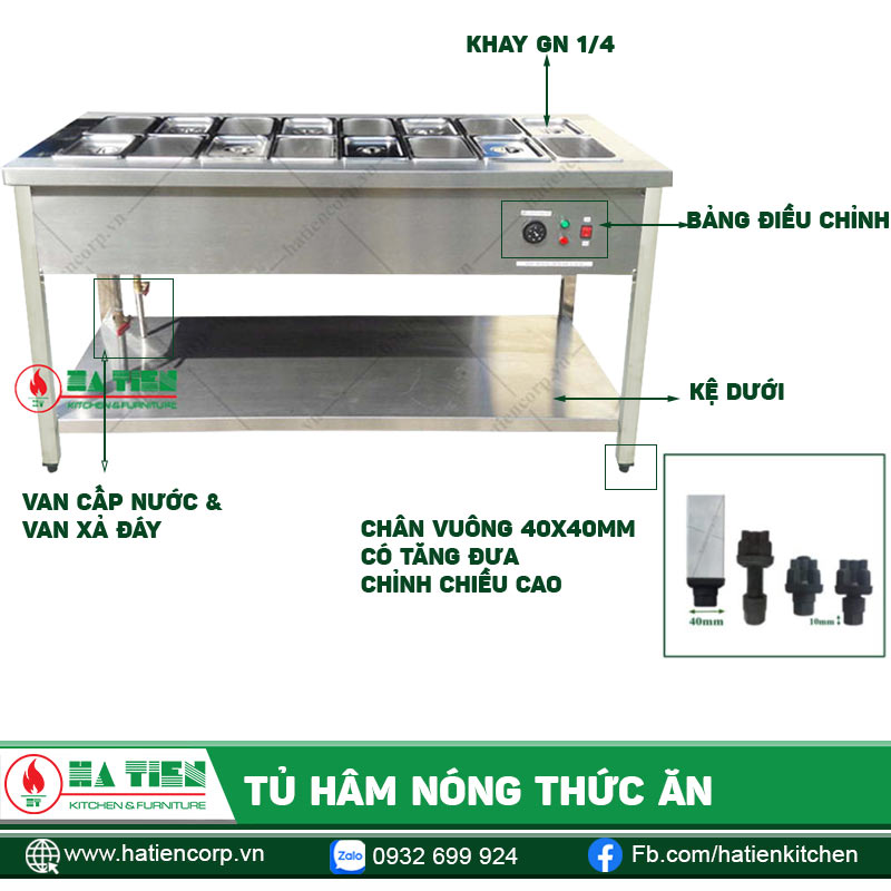 Tủ hâm nóng thức ăn là giải pháp tốt nhất cho sự lựa chọn của bạn. Với nhiều loại khay GN khác nhau, chúng ta có thể thiết kế khay đựng thức ăn phù hợp nhu cầu. Đến với Hà Tiên bạn sẽ được tư vấn tận tình và sở hữu tủ, quầy inox ưng ý nhất.