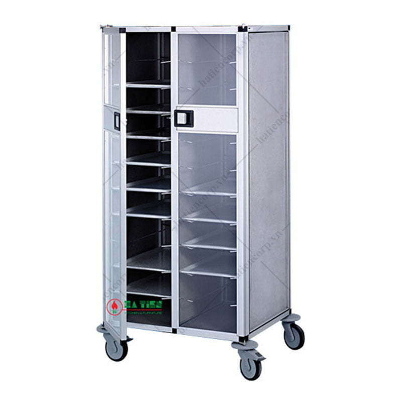 Xe đẩy khay ra thức ăn 2 ngăn có cửa