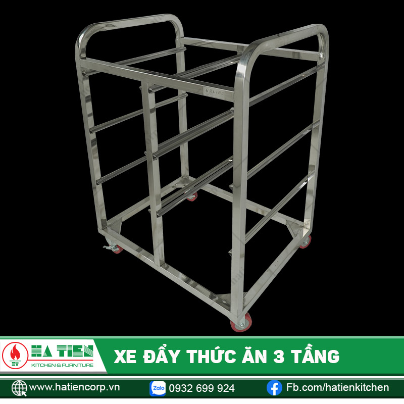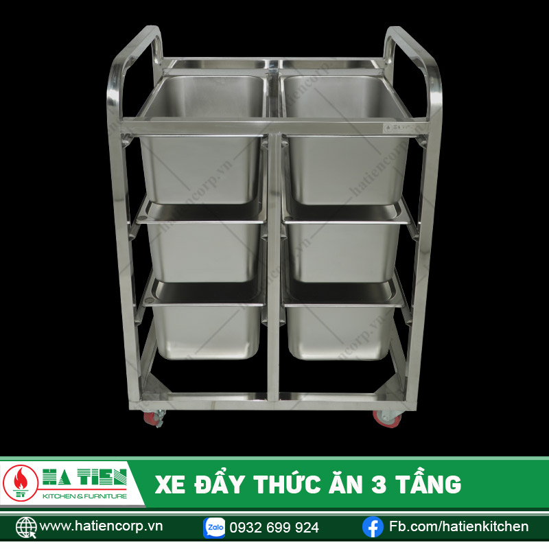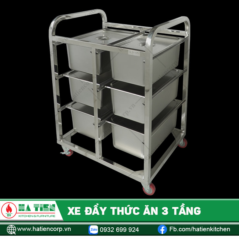 Xe đẩy thức ăn 3 tầng Hà Tiên – Xe inox đẩy khay thực phẩm GN